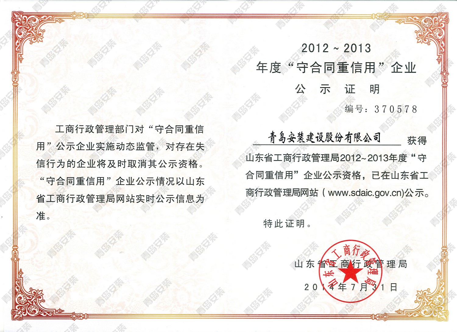 省級守合同重信用企業