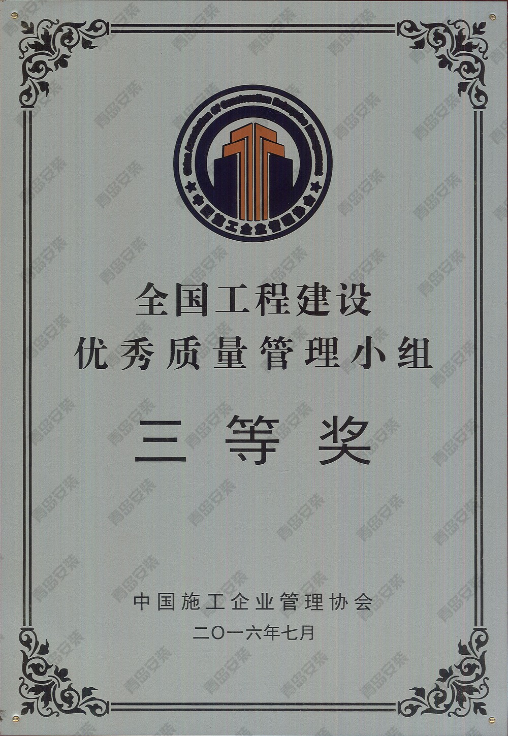 2016年度全國工程建設優秀質量管理小組三等獎