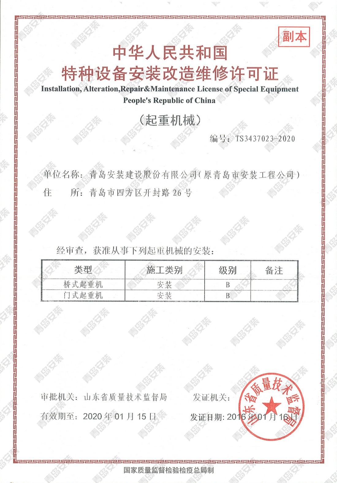 特種設(shè)備安裝改造維修許可證-鍋爐